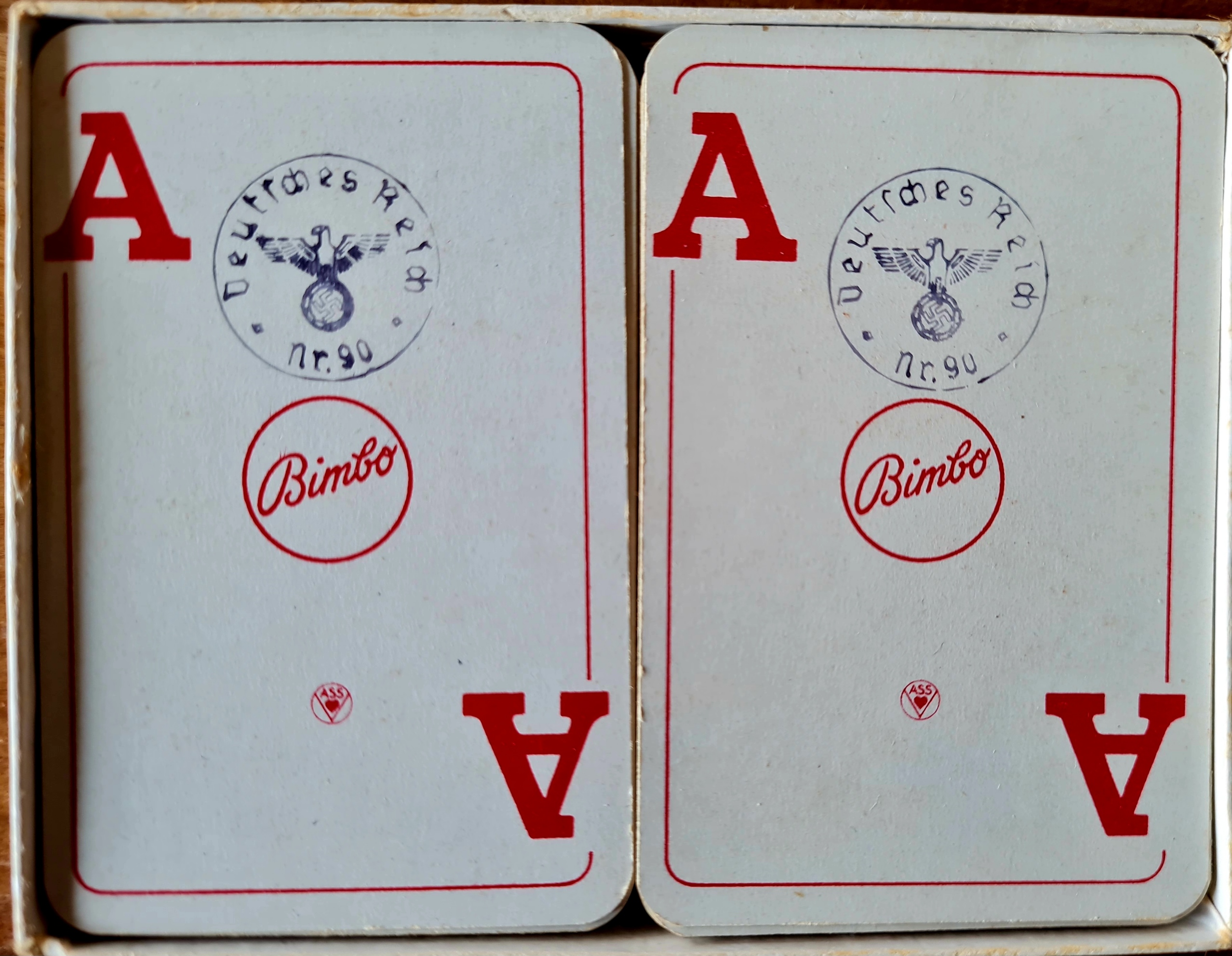 Das Sammlungsexemplar enthält zwei vollständige Kartensätze mit je 64 Karten und eine Spielanleitung, die drei verschiedene Spielvarianten beschreibt. Jeweils eine Karte der Kartensets trägt einen Stempel mit der Aufschrift Deutsches Reich Nr. 90 mit Reichsadler und Hakenkreuz.