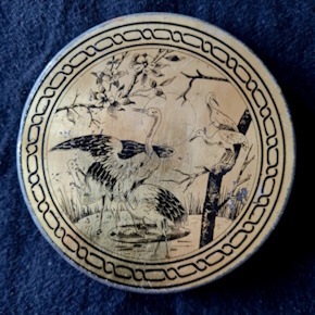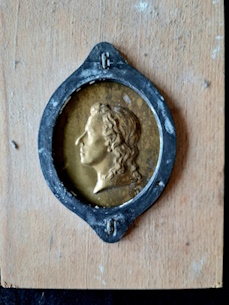 Der Deckel des Sammlungsexemplars mit der Produktionsnummer 4173 ist beschädigt (vorderes Seitenteil des Deckels fehlt). Für die Herstellung von kleinen Medaillons ist nur noch eine runde Messinggießform in der Schachtel enthalten.