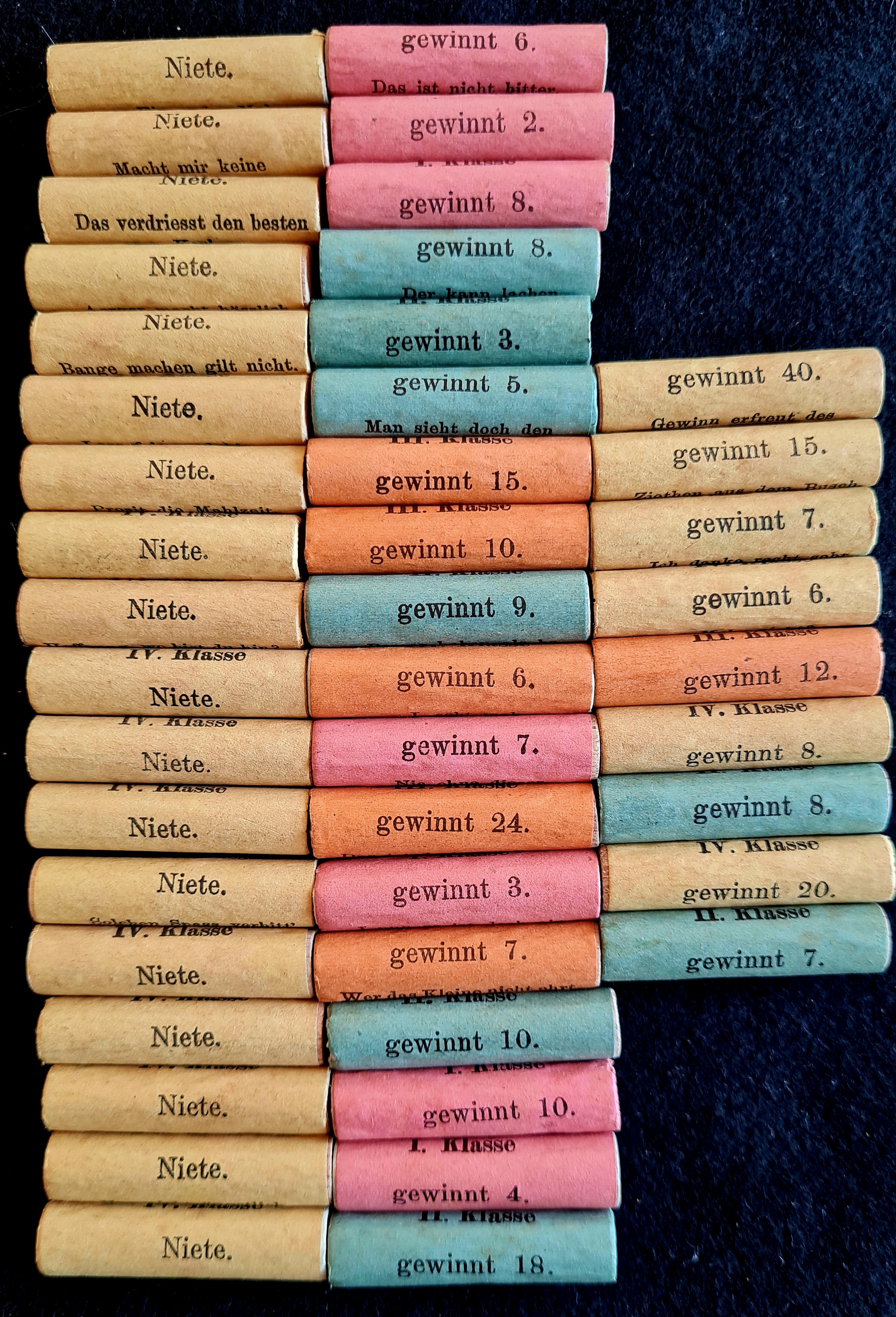 Die zweite Urne, die Lostrommel, wird mit Gewinnrollen befüllt (45 vorhanden, wahrscheinlich fehlen 5). Die eigentliche Ziehung erfolgt dann mit Hife eines Ziehungsgerätes.