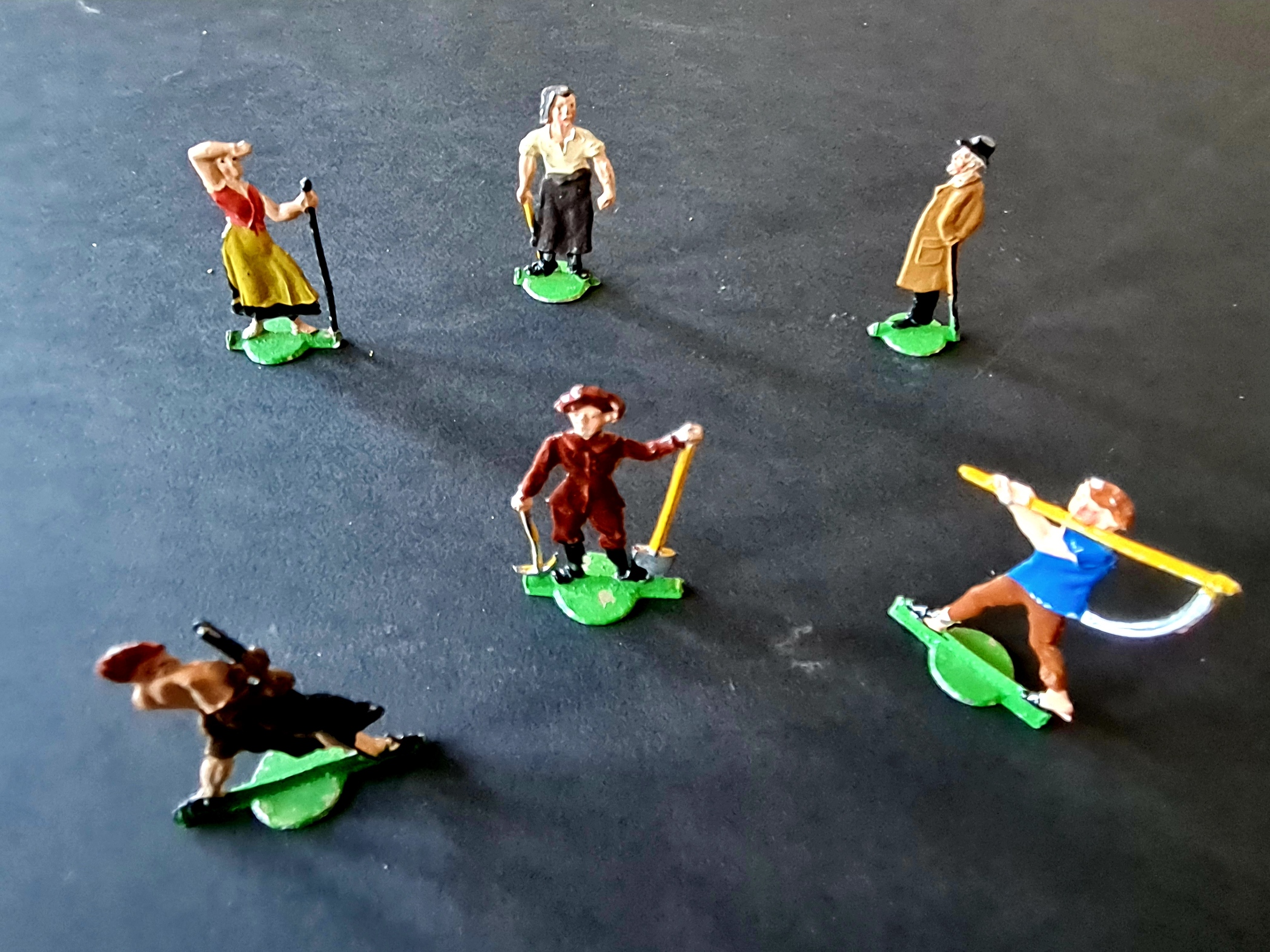 Originelles Zwergenweitwurf-Spiel. Mit einer amusanten großformatigen Deckelillustrationen. - Enthält: 4 farb. Teile zum Aufstellen, 1 Metallwippe und 3 Zwergfiguren. - Mütze einer Spielfigur sowie Schachtelkanten etwas beschädigt. Deckel mit wenigen Wasserflecken.