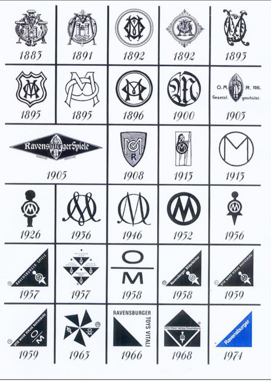 Die Entwicklung des Ravensburger Verlags lässt sich auch anhand der verschiedenen Logos nachvollziehen.https://de.wikipedia.org/wiki/Ravensburger