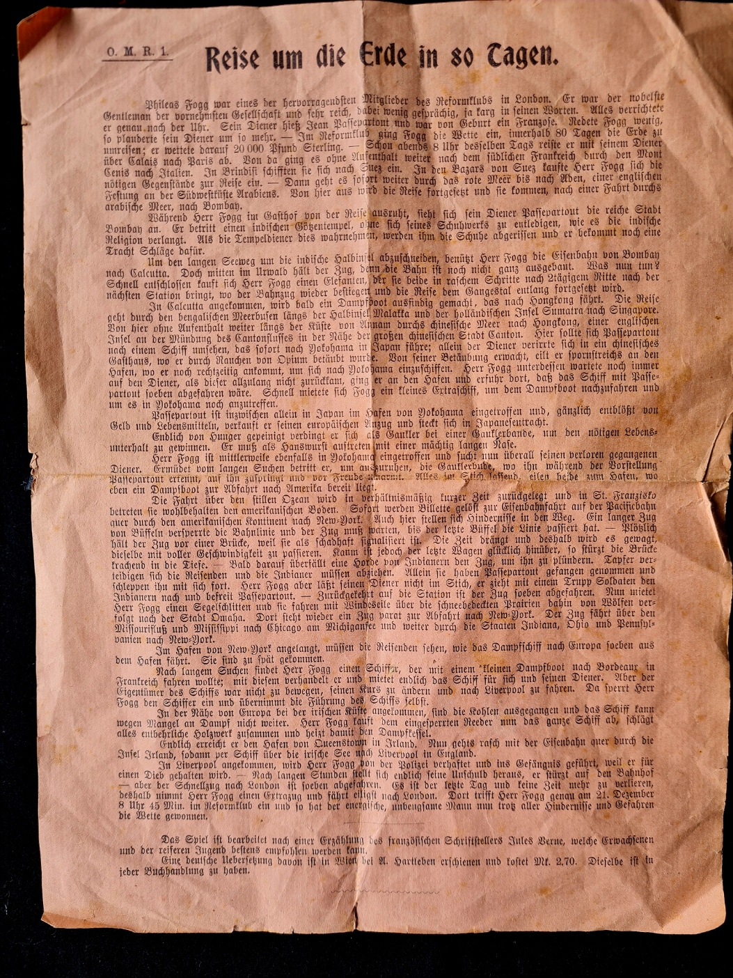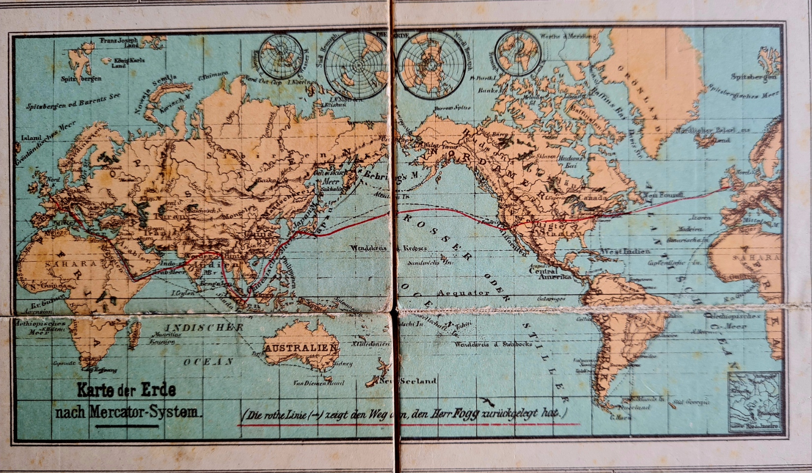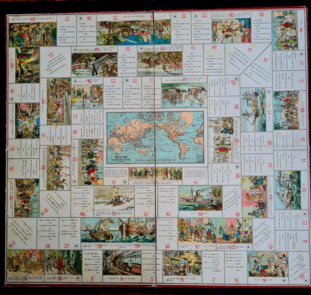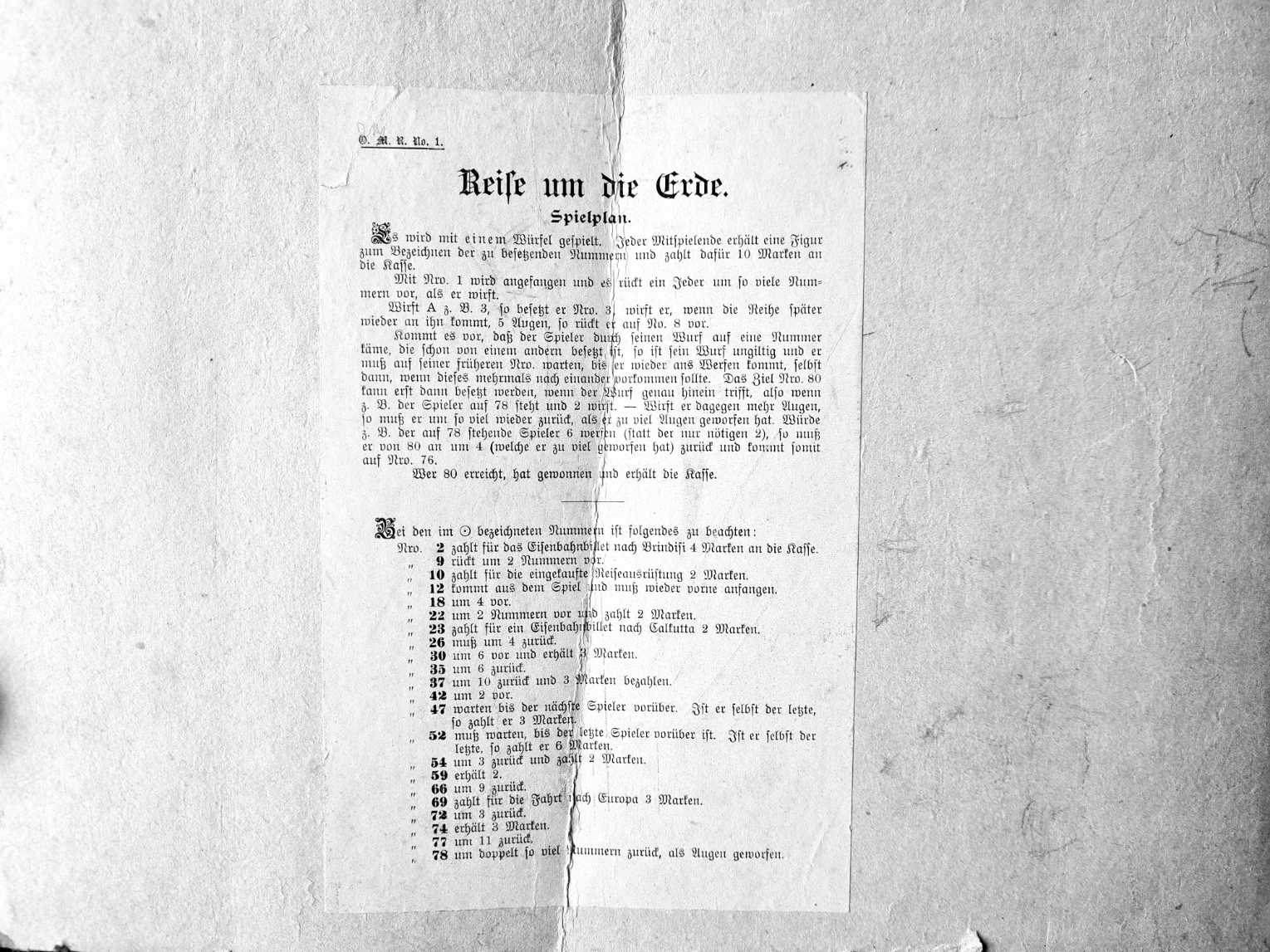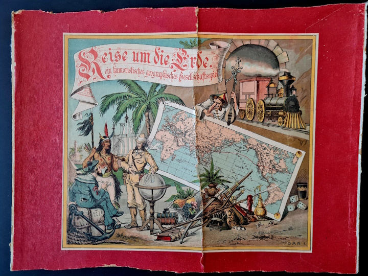 In der Spielesammlung sind nur Reste von Reise um die Erde vorhanden; Schachteldeckel, Spielplan und Spielregel - vermutlich von der ersten Version.