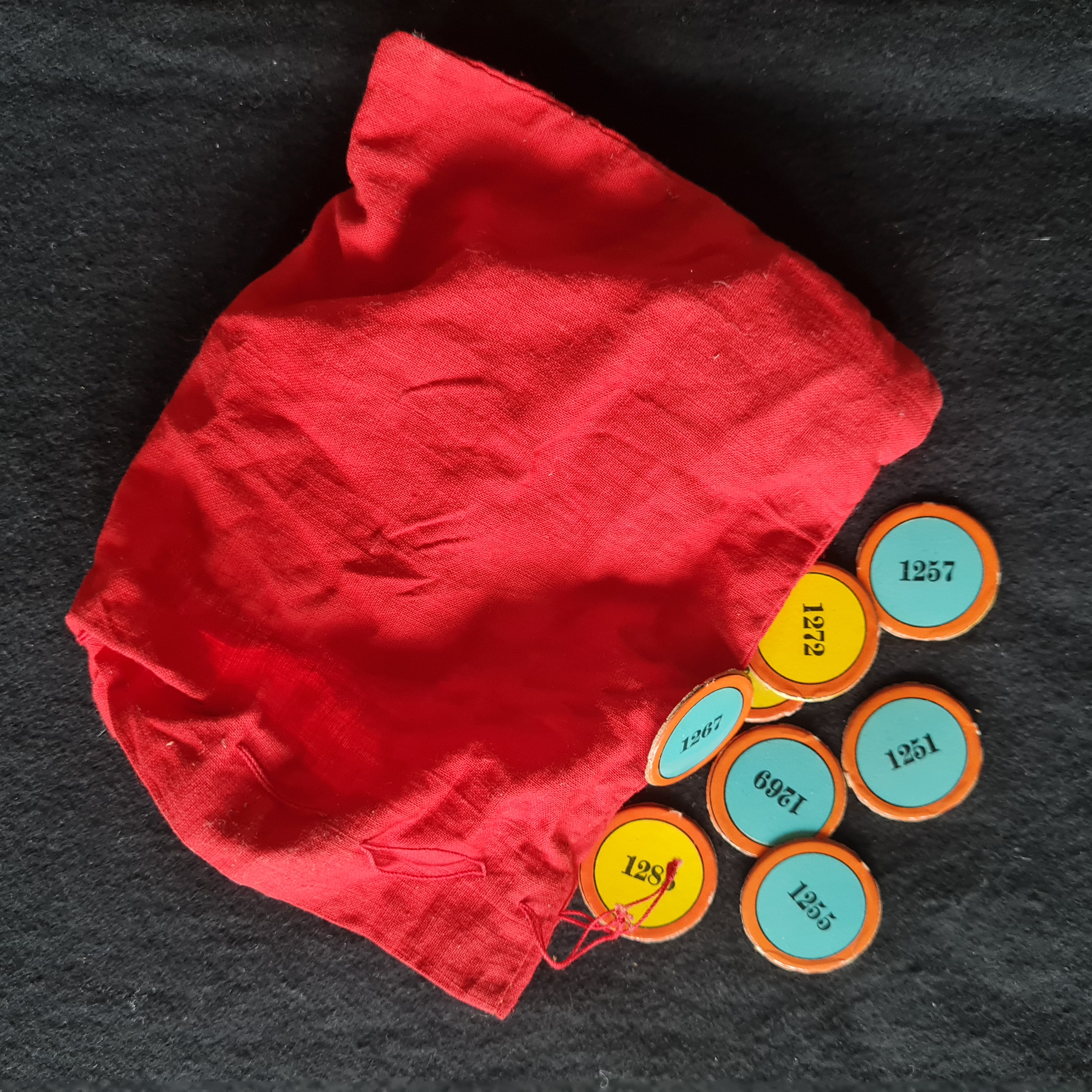 Die erste Urne besteht aus einem Säckchen, das mit Chips mit den Lotterienummern 1250 bis 1299 befüllt ist (Nr. 1270 fehlt). Bei den Ziehungen wird jeweils ein Chip blind gezogen.