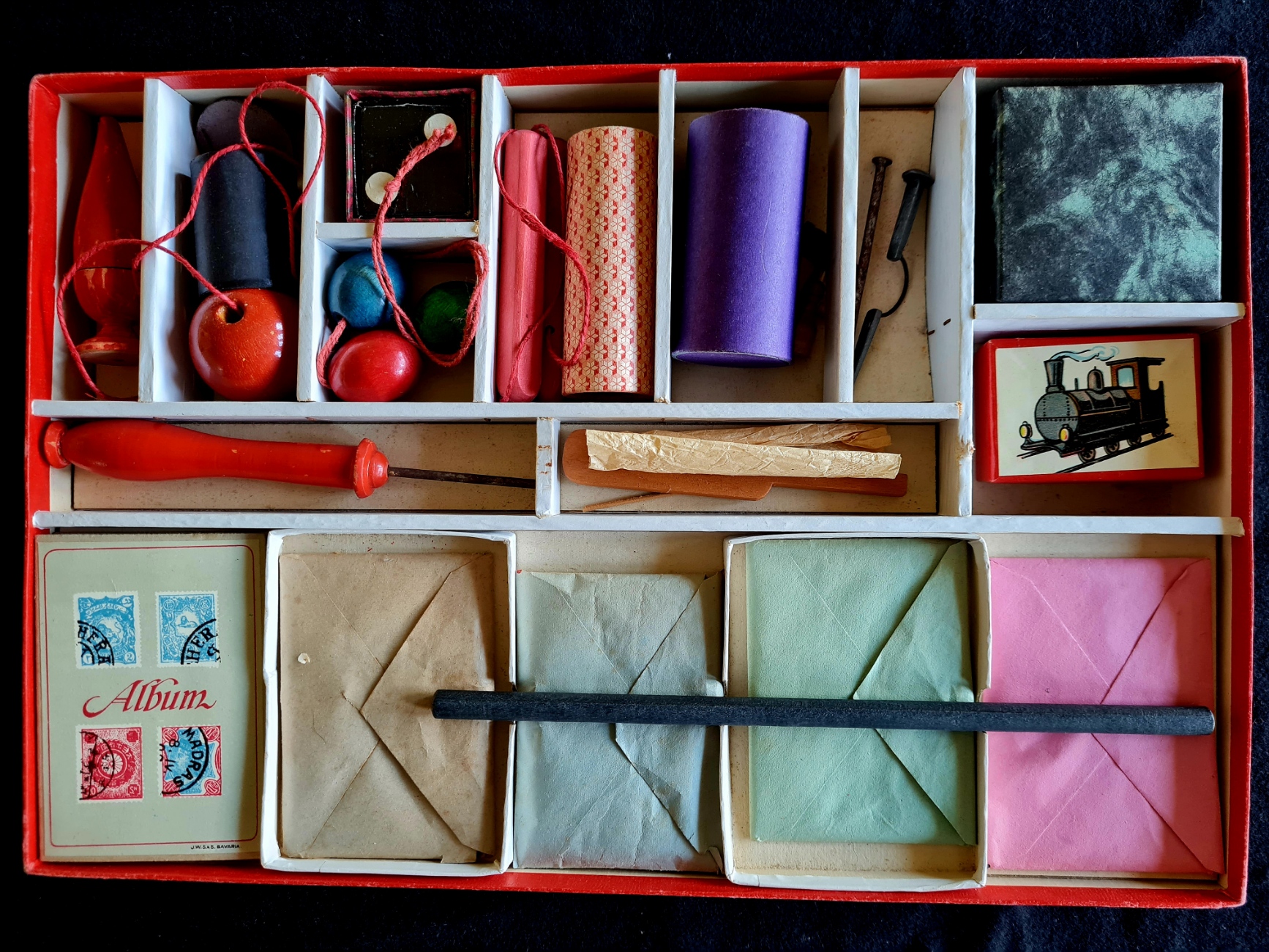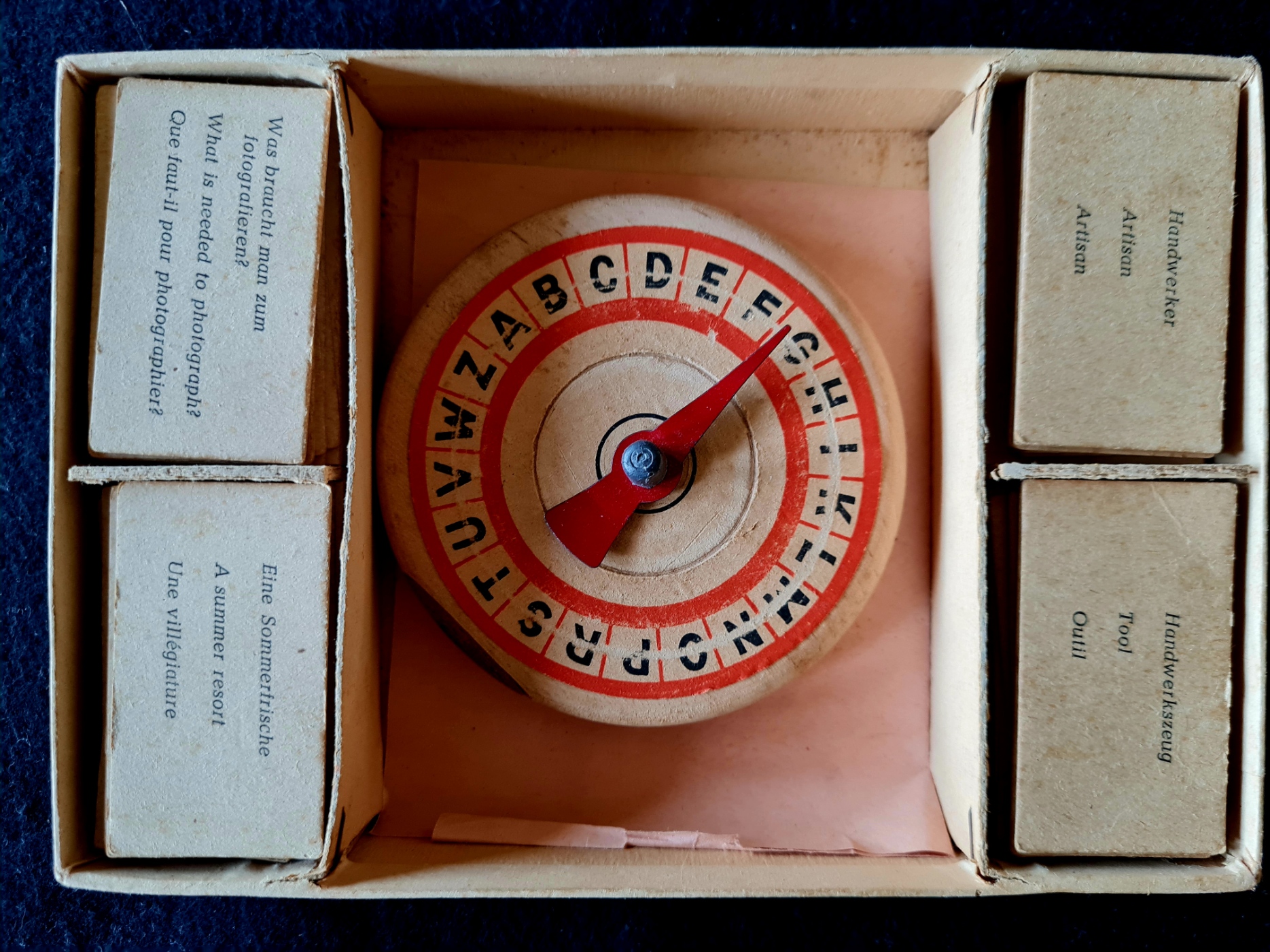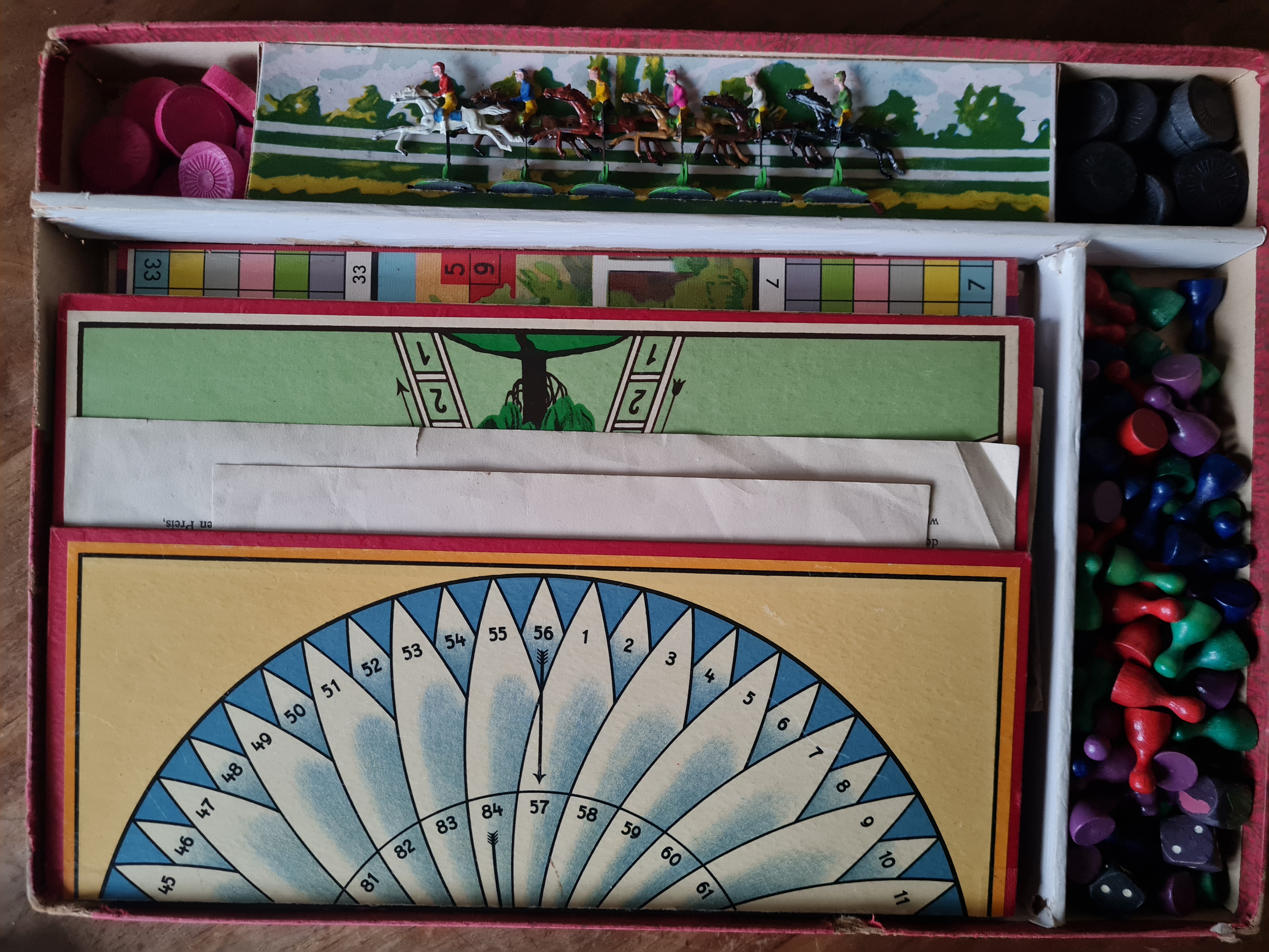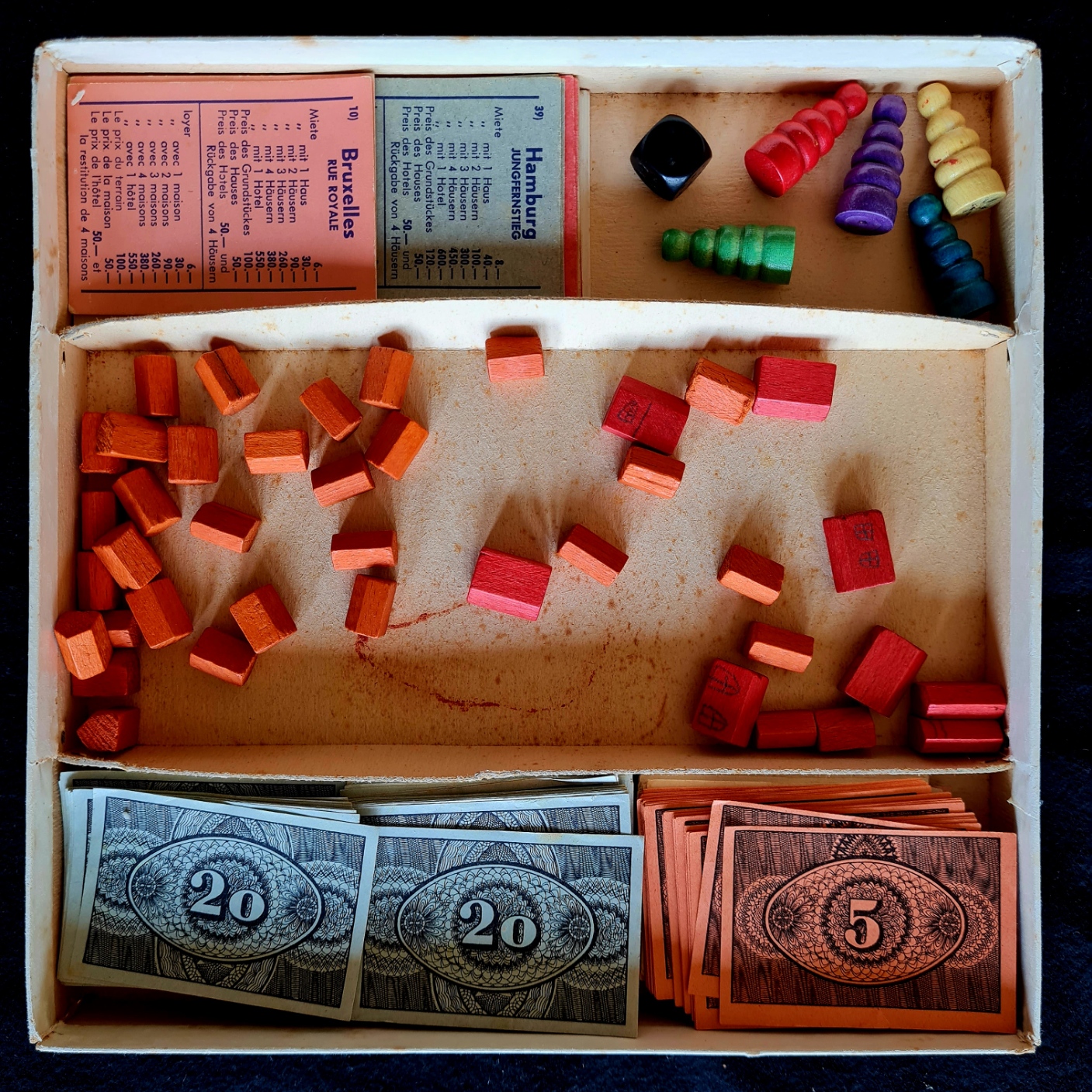 Das Spieleexemplar ist vollständig und gut erhalten - mit einer Spielanleitung in Französisch (Geschenk von Sepp Obermaier).