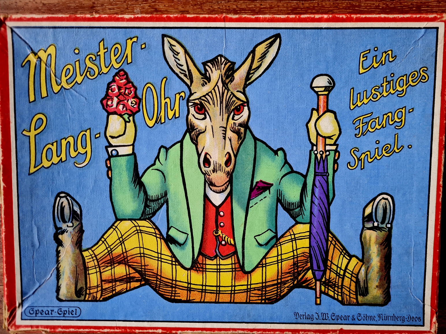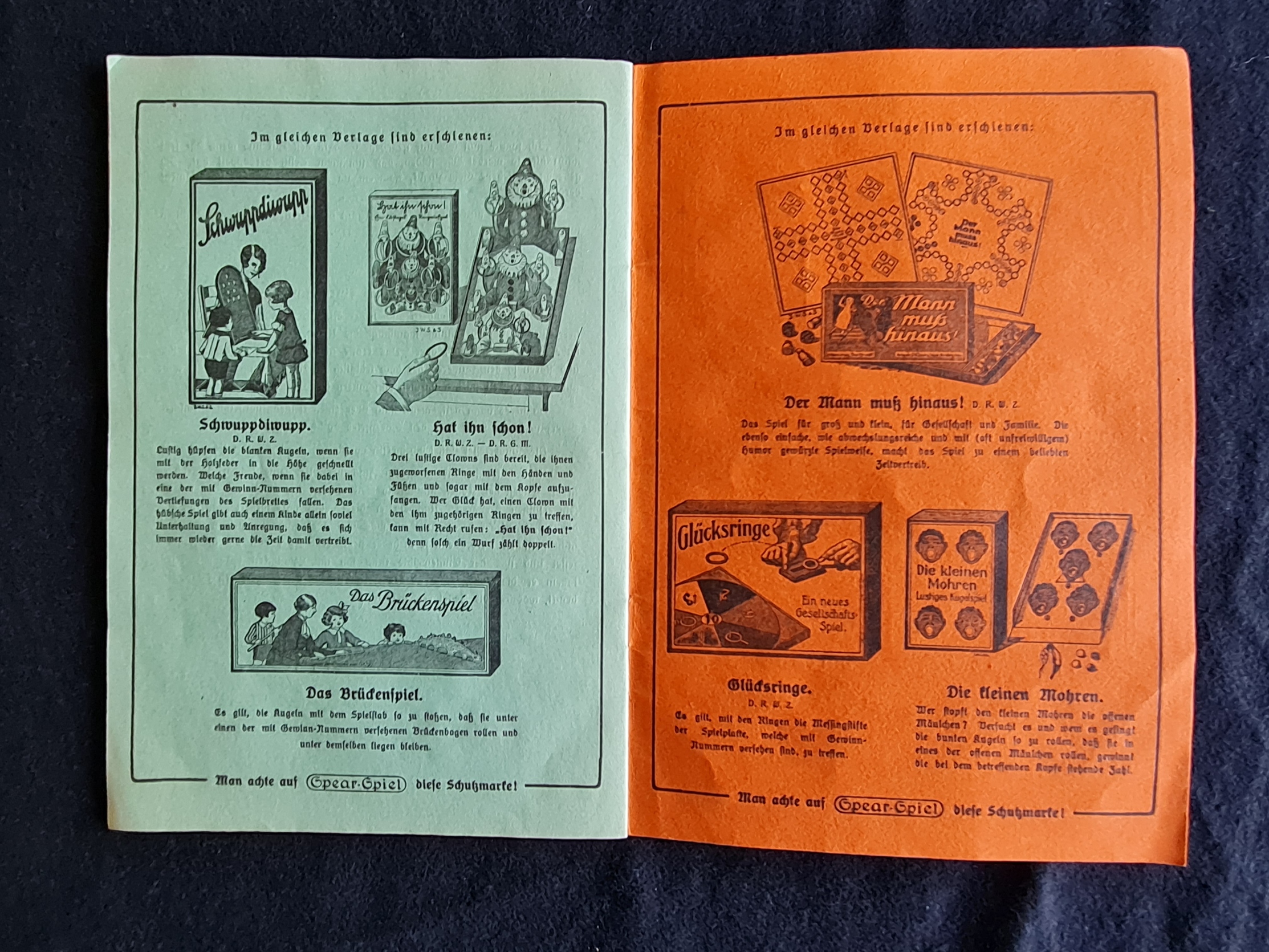 1879 von Jacob Wolf Spear in Fürth gegründet, produziert das Unternehmen in Nürnberg-Doos und in Enfield bei London über 115 Jahre lang internationale Spiele-Klassiker. Angesichts dieses Erfolgs verblassten wohl die harten Jahre der Nazi-Diktatur, als das jüdische Unternehmen antisemitischer Hetze und Kaufboykotten ausgesetzt war. 1939 musste Firmendirektor Hermann Spear das Unternehmen weit unter Wert verkaufen und erhielt von der Kaufsumme keinen Pfennig. Profiteur und neuer Firmenleiter war der Nürnberger Vorzeigeunternehmer Hanns Porst. Als „Euer Onkel Hanns“ verlegte er Spear-Klassiker, aber auch Propaganda-Versionen beliebter Brettspiele, etwa Bomben auf England oder Im Fluge durch Großdeutschland. Der einstige Firmenchef Hermann Spear und elf weitere Familienmitglieder wurden im Konzentrationslager ermordet.