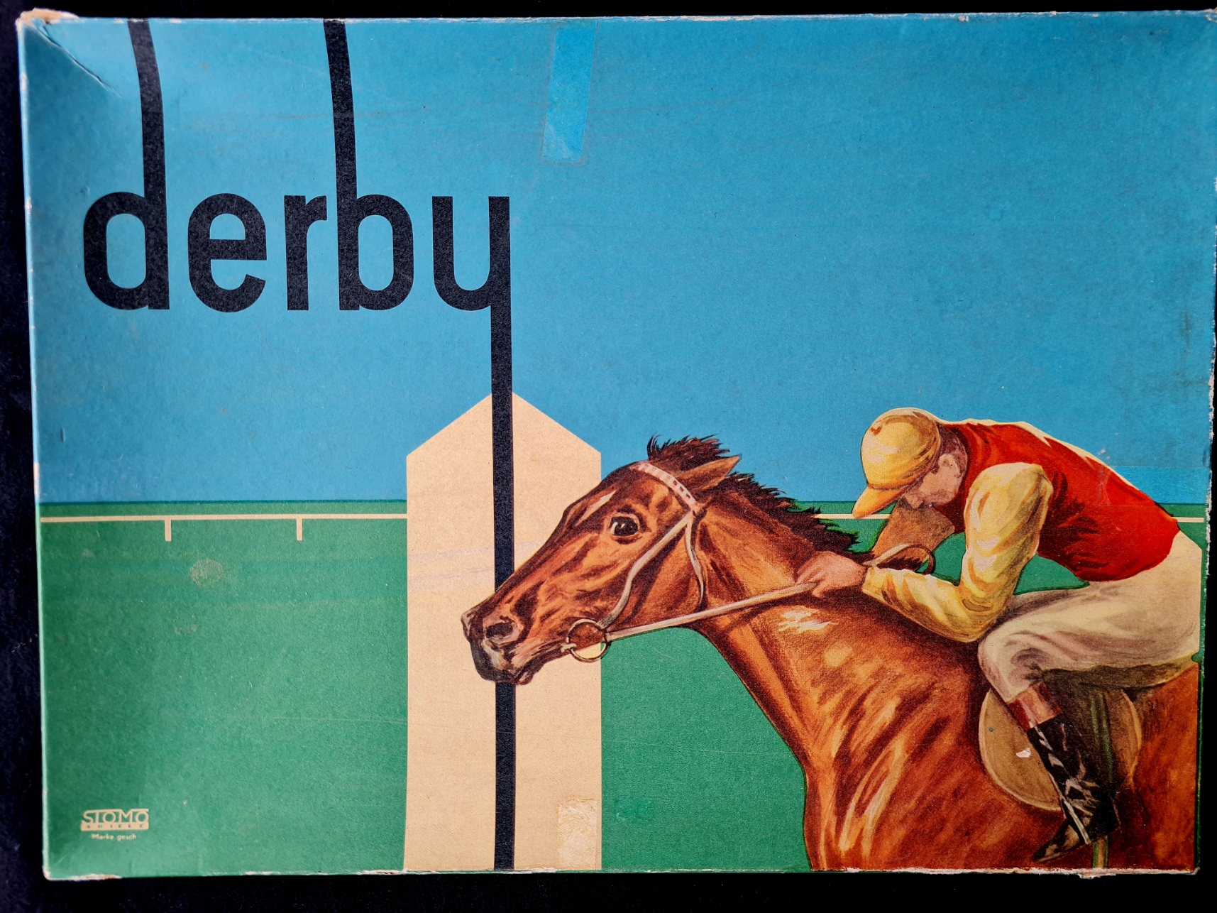 Bei derby von STOMO Spiele handelt es sich um ein Pferdewettrennspiel, dass sich dadurch auszeichnet, dass sich (zunächst) alle Reiter nach einem Würfelwurf gemeinsam nach vorne bewegen. Die Reihenfolge der Pferde ändert sich durch einige verschieden nummerierte Felder und beim Erreichen von Hindernissen. Dadurch entsteht ein abwechslungsreicher Rennverlauf. (Taktische) Entscheidungen durch die Spieler sind nicht möglich. Es handelt sich also eher um einen Zufallsgenerator. Aus diesem Grund steht auch das Wetten auf einzelne Pferde (Gewinn, Platz) im Vordergrund. Interessant ist der immerwährende Totalisator. Nach Eintrag der Wettbeträge und Berechnung der Gewinne kann der Totalisator einfach durch Abheben der obersten Folie gelöscht werden.