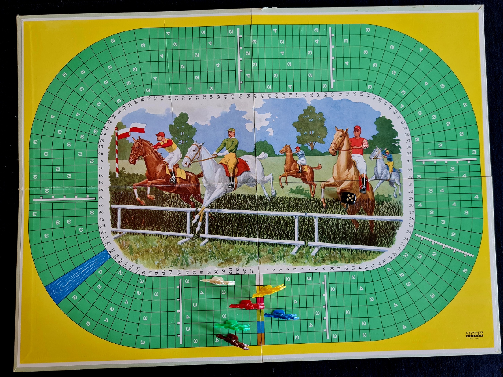 Die deutlich jüngere Variante mit gleicher Spielregel (Deckelinnenseite, anderes Schriftbild) unterscheidet sich in einigen Punkten: Der Spielplan ist nur einseitig (identisch mit Plan A der älteren Variante), die Reiterfiguren sind größer und plastischer und auf Metallfedern beweglich. Im Sammlungsexemplar fehlen die Nummernkarten, die 3 beiliegenden Würfel sind nicht original.