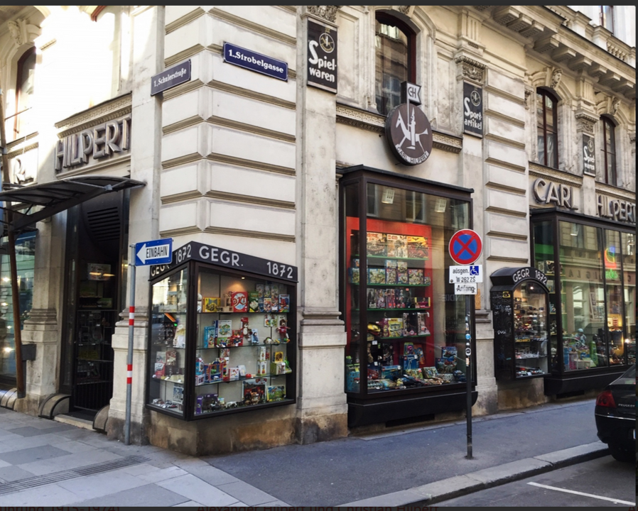 Wiens ältestes Spielwarengeschäft - “Spielwaren Hilpert” hinter dem Stephansdom - wurde im Jahr 1872 gegründet. Nach 147 Jahren schloß es im Jahr 2019 seine Pforten.