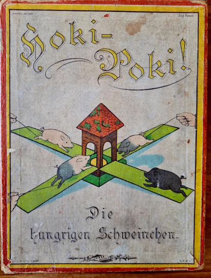 Von Spear Spiele wurde Hoki-Poki! in zwei Versionen hergestellt: eine größere mit vier Schweinchen und eine kleinere mit nur zwei Schweinchen. Das Sammlungsexemplar wird - entgegen der Abbildung auf dem Deckel - nur mit zwei Schweinchen gespielt.
