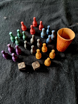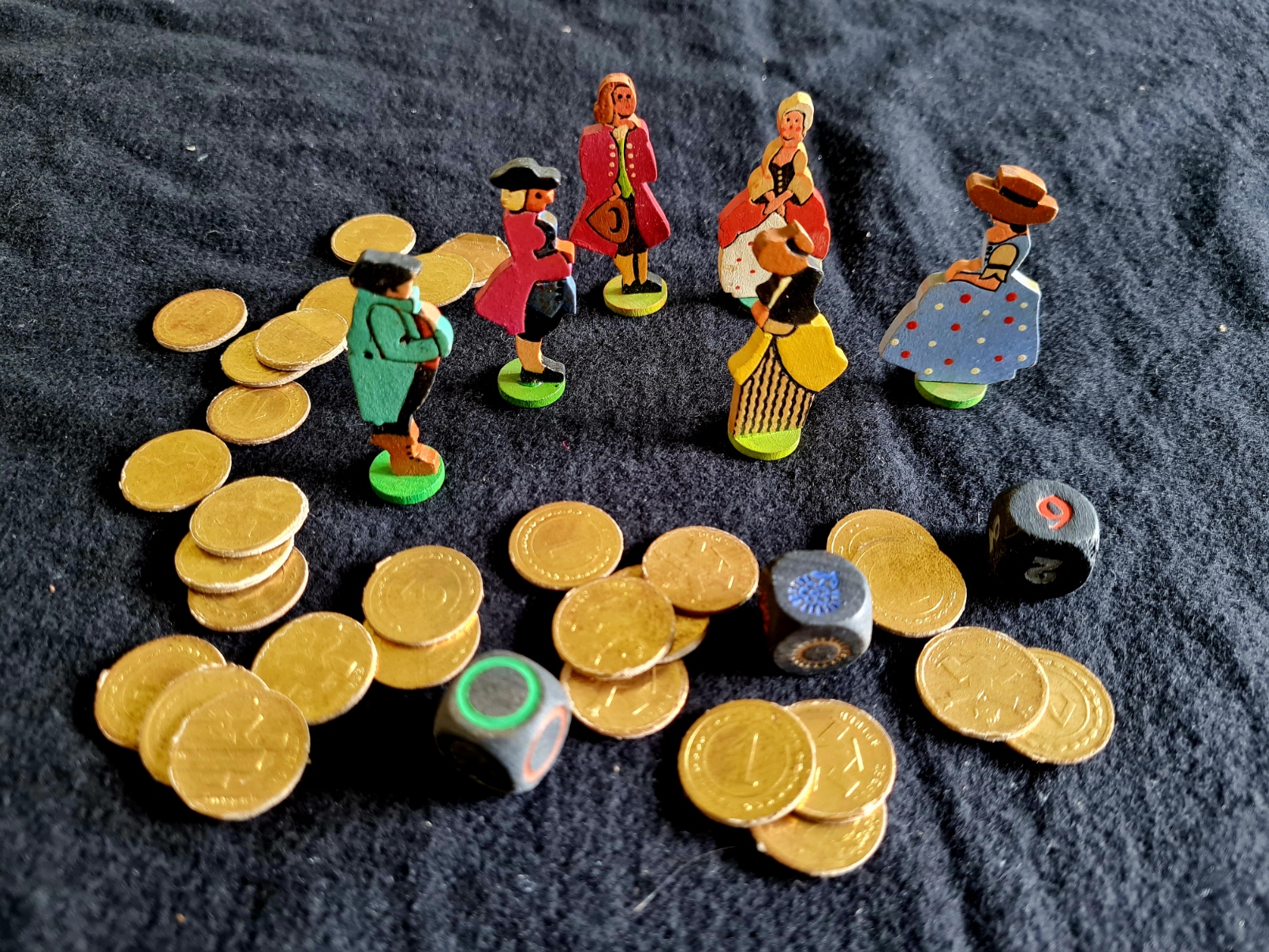 Mit drei unterschiedlichen Würfeln wird dieses Spiel in Gang gesetzt.