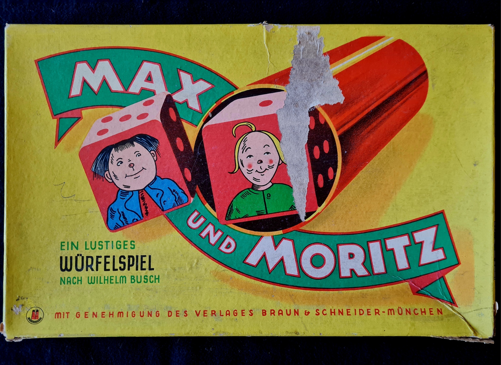 Das Exemplar in dre Spielsammlung ist gut erhalten; lediglich ein Buchstabe fehlt.