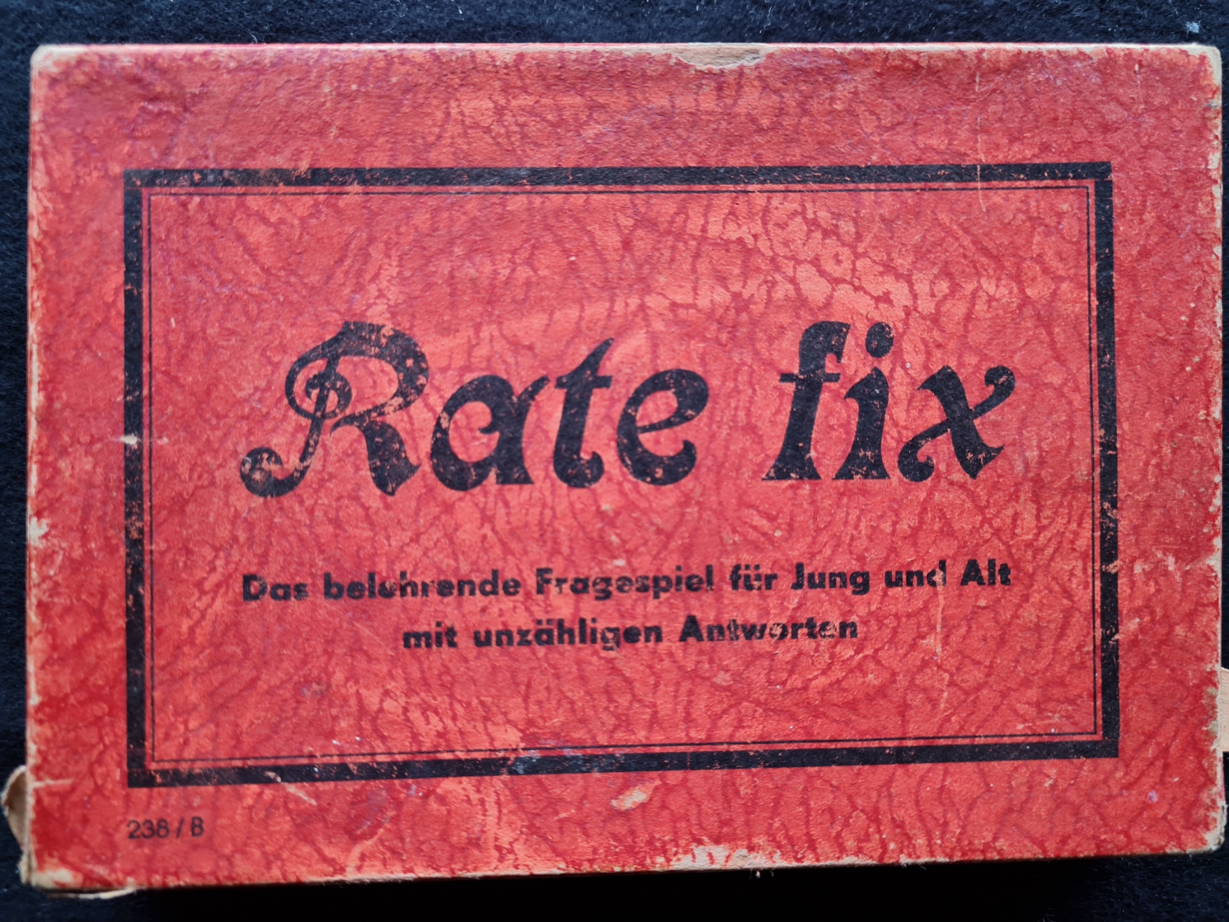 Bei dem Sammlungsexemplar handet es sich um eine sehr frühe Ausgabe von Denk fix!. Die Drehscheibe ist aus Holz; von den 96 Frage- und Antwortkärtchen sind 95 vorhanden.