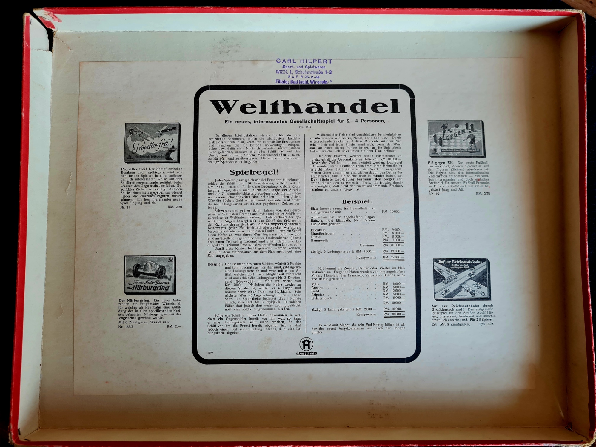 1936 wurde das Spiel unter dem Titel Spekulation bei der 1857/1868 gegründeten Wiener Druckerei Stockinger und Morsack (Stomo Spiele) publiziert.