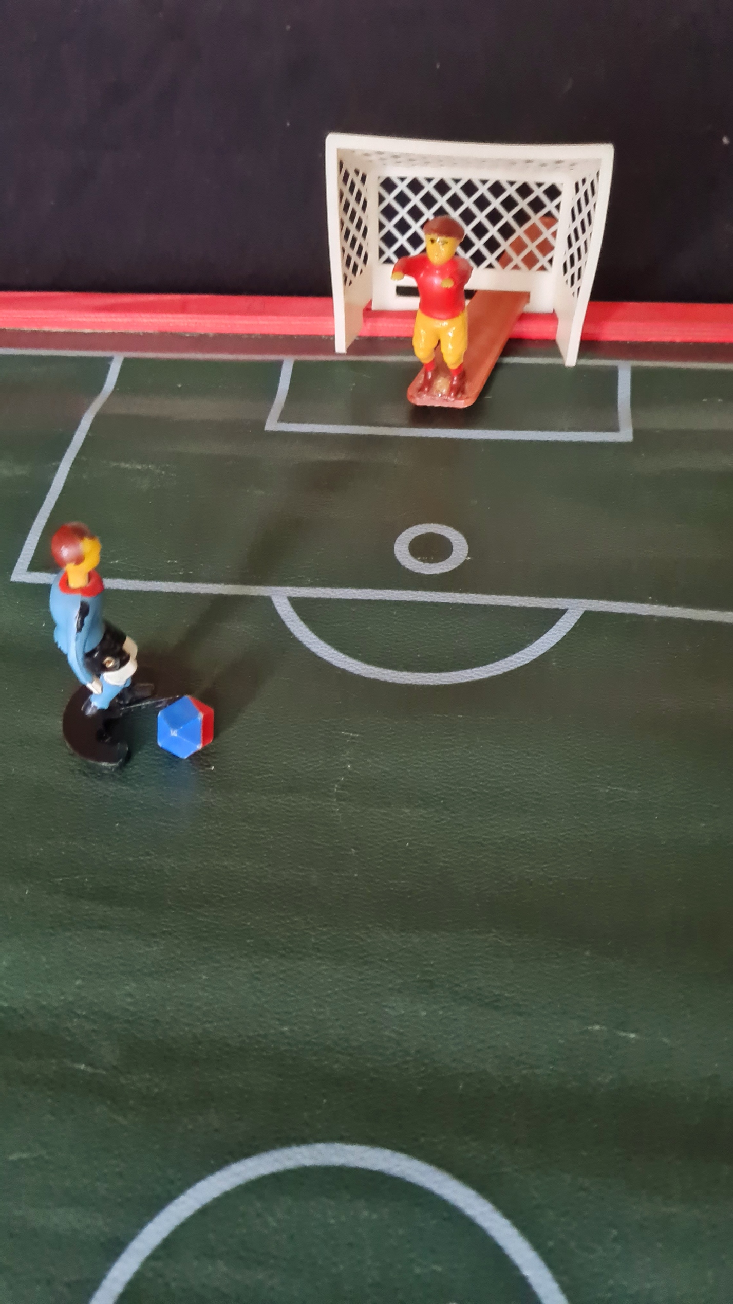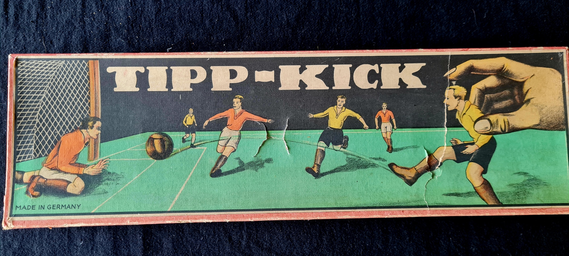 Ab dem Jahr 1925 wurden Tipp-Kick Spiele mit zwei Kickerfiguren aus Blei hergestellt, deren Fuß sich auf K(n)opfdruck bewegen ließ um damit einen zweifarbigen Würfel aus Kork mehr oder minder genau auf oder in ein Metalltor zu plazieren. Zunächst gab es dazu zwei knieende Torwarte.
