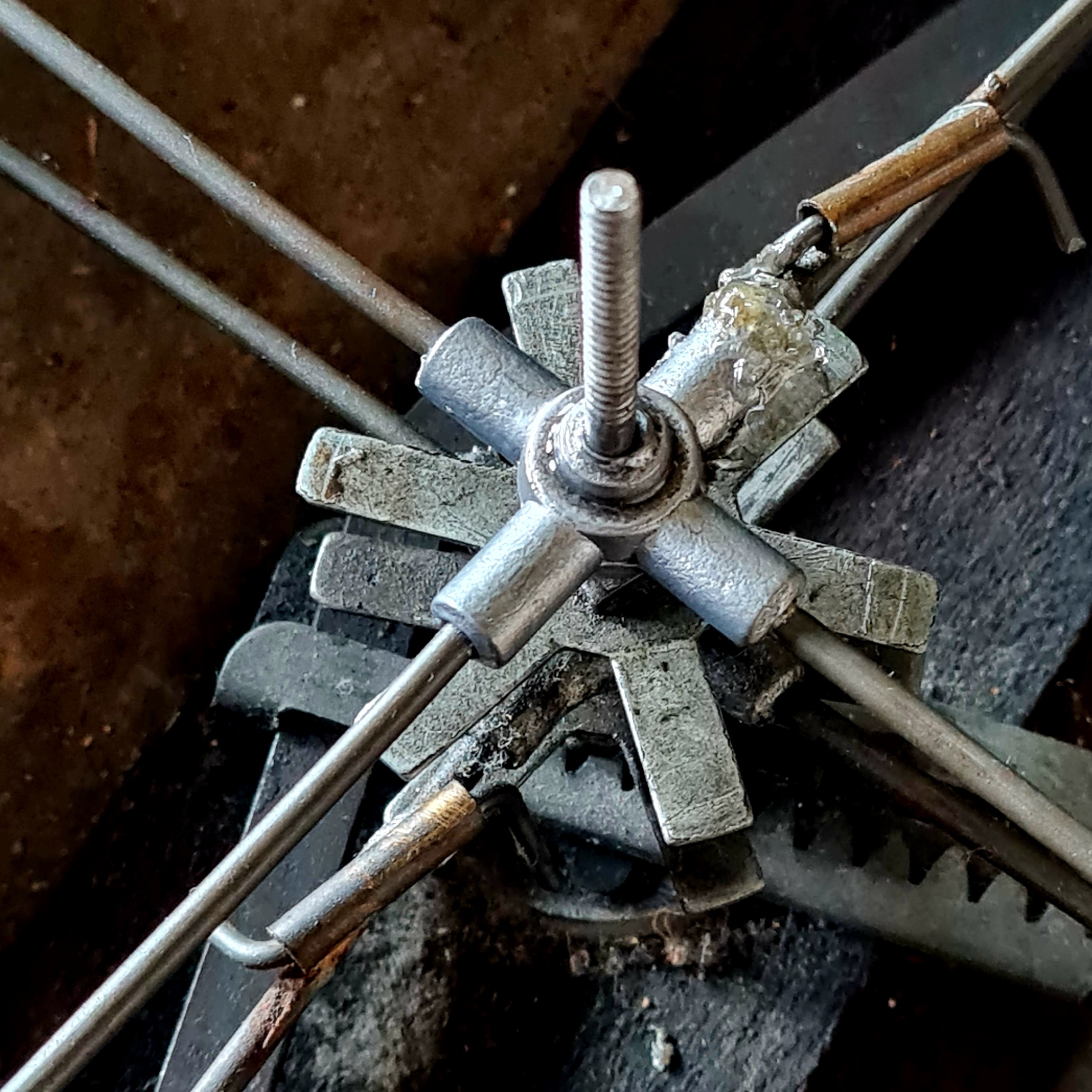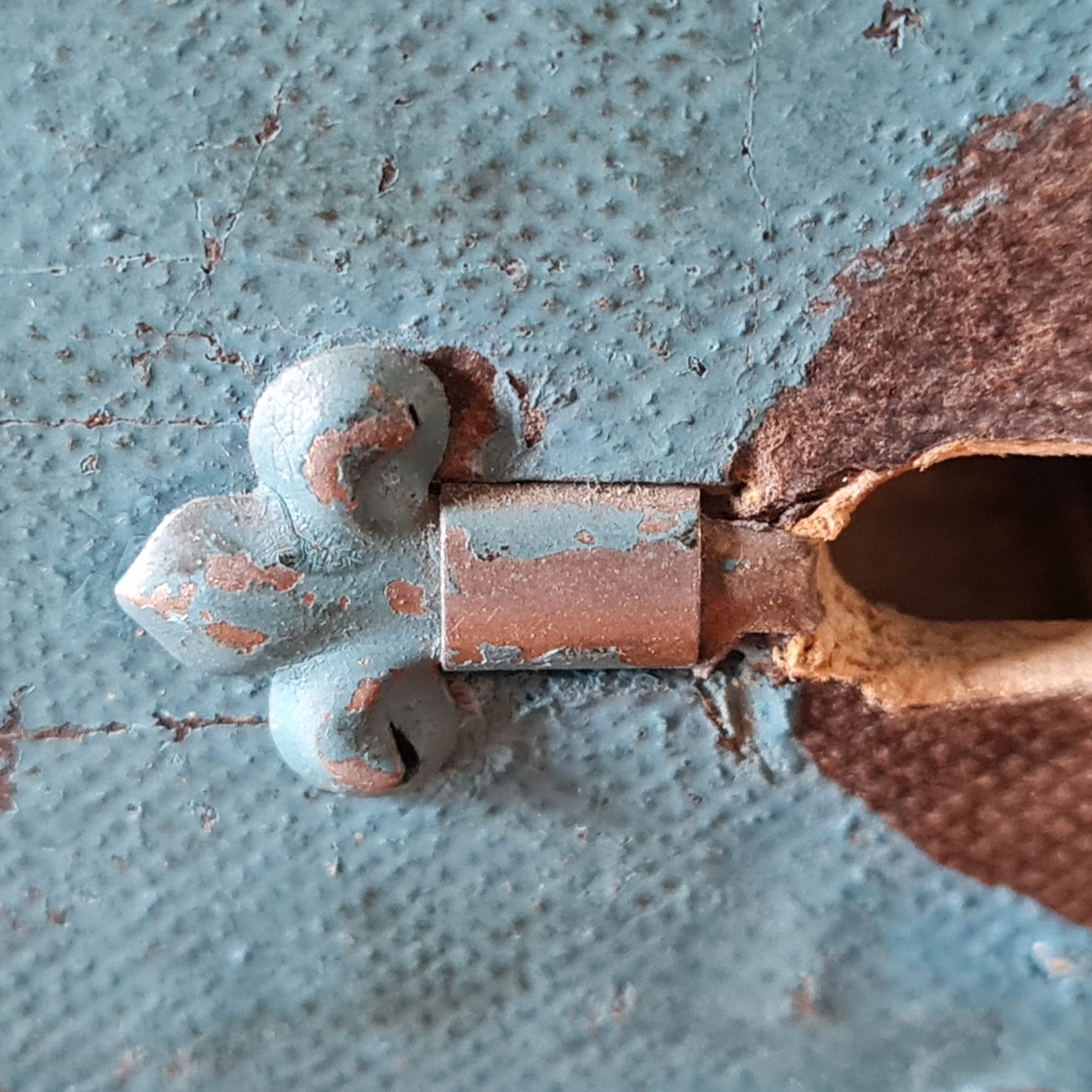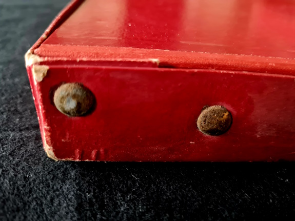 - der grüne Filzstoff mit dem das Blech bezogen war ist nur noch teilweise vorhanden