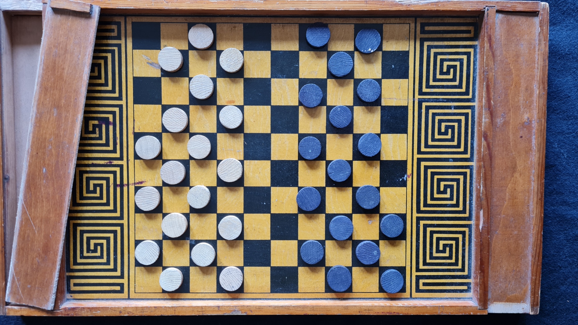 Das vorhanden Exemplar ist baugleich mit dem im Freilichtmuseum Kommern vorhandenen. Die Grafik des Gänsespiels ist anders. Spielfiguren dafür fehlen; auch für die Polnische Dame fehlen zwei weiße und drei schwarze Steine.