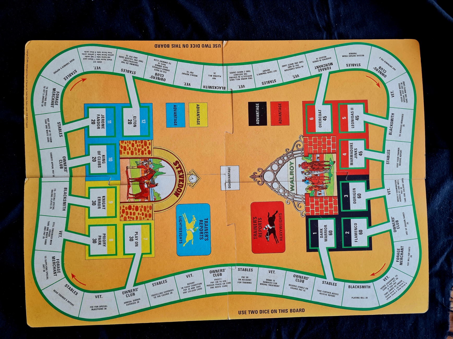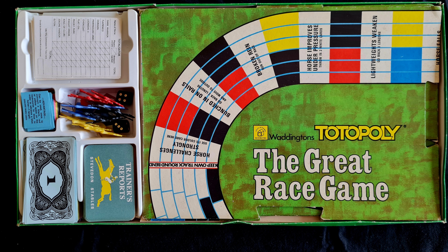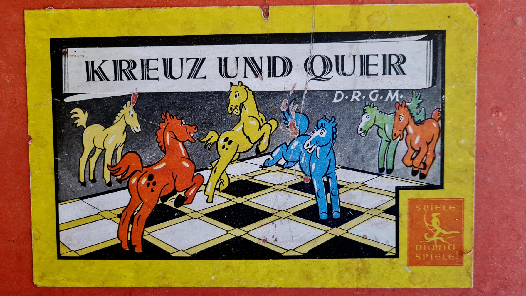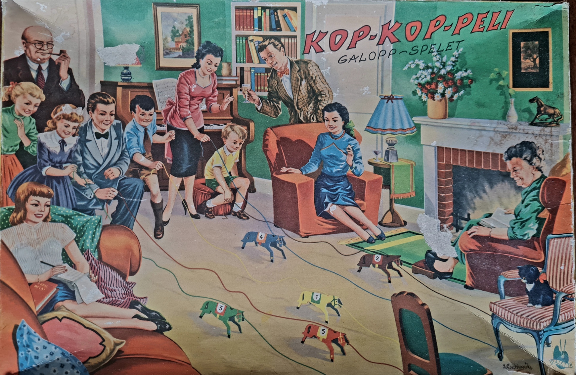 Das Sammlungsexemplar ist gut erhalten (sechs Pferde). Eine Spielanleitung fehlt, aber die Illustration auf dem Umschlag gibt ausreichend Hinweise auf den Spielablauf.