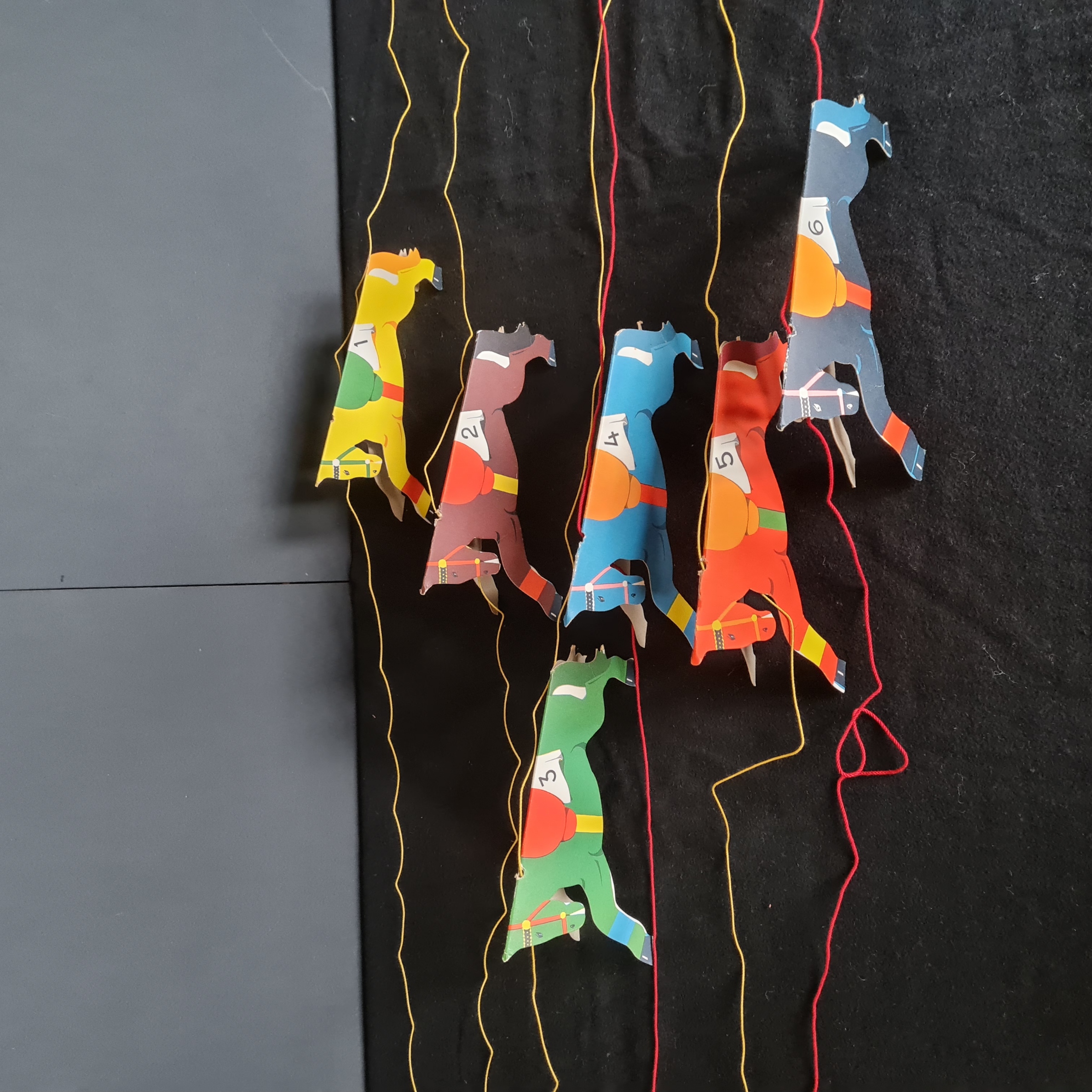 Dennoch ist das Wettspiel funktionstüchtig. Mit einem seitlichen Kniehebel-Antrieb werden die Pferde in Bewegung gesetzt. Mit einer kleinen Hebelbewegung wird eine aufziehbare Kette im Inneren des Kastens an einer Sprungfeder gespannt und ein Räder-Mechanismus versetzt alle Pferde in eine sehr schnelle Bewegung und sorgt dafür, dass diese ca. 30 Sekunden in Bewegung bleiben (beim Eingangsvideo wurde der Hebel nur leicht gedrückt - Renndauer 13). Dadurch kann die Position an der die Pferde zum Stillstand kommen als zufällig angesehen werden. Dieser Zufallsgenerator funktioniert einwandfrei. Da die Originalspielregeln nicht überliefert sind, wird davon ausgegangen, dass dasjenige Pferd zum Sieger erklärt wird, das bei Stillstand dem Zielmasten am nächsten ist und damit auch die Wetteinsätze erhält.