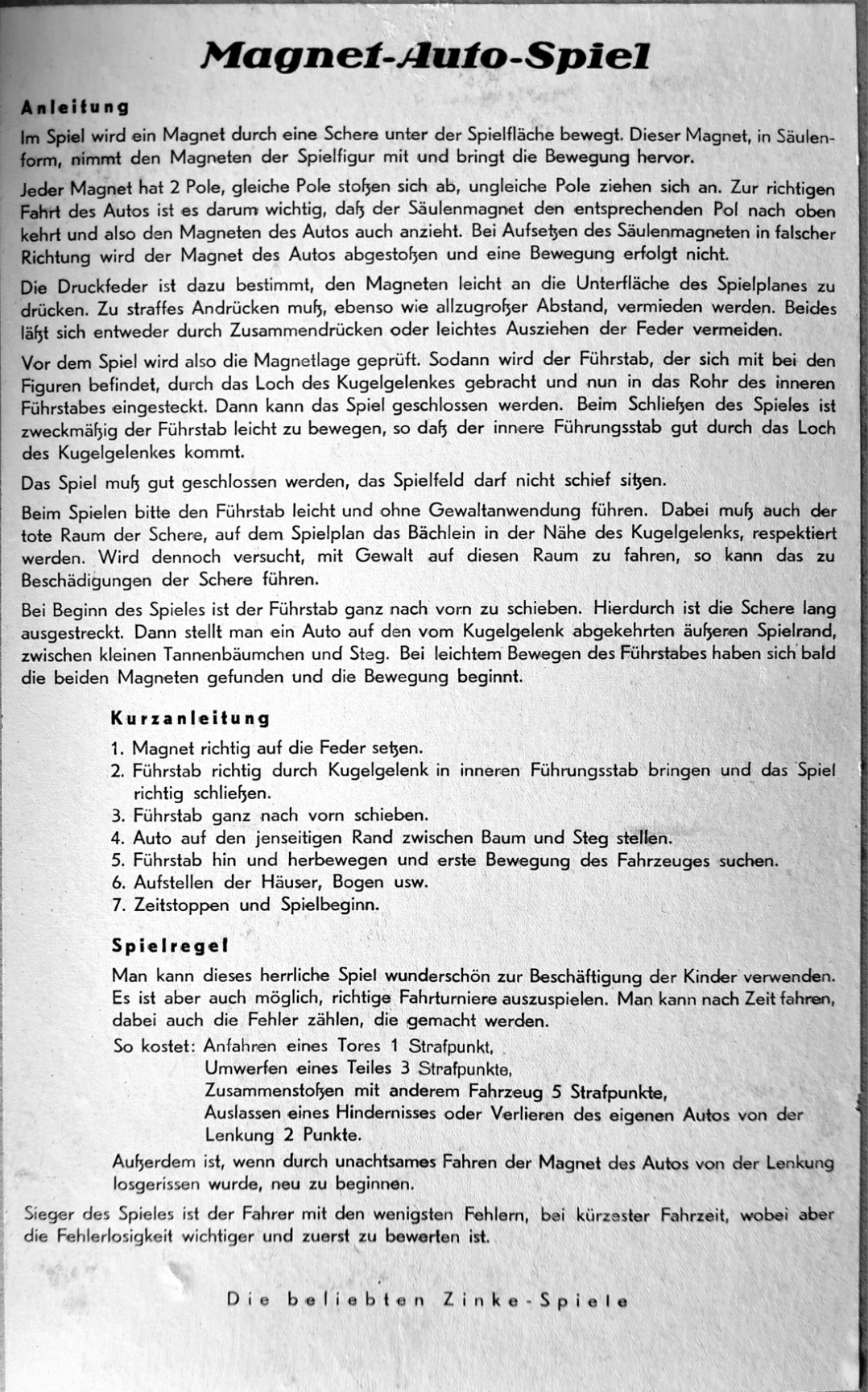 Im Internet findet sich ein Hinweis auf ein Magnet-Auto-Spiel von Zinke Spiele (DDR 1947).