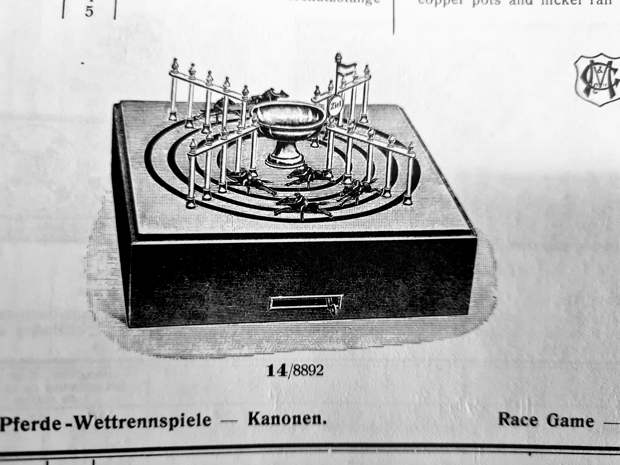 Das in der Spielesammlung vorhandene Pferdewettrennspiel wurde auf einem Antikmarkt in München gekauft. Das Spiel ist sehr gut erhalten; möglicherweise wurde ein Originalpferd (blau) durch ein professionell nachgemachtes ersetzt. Das Logo mit den Initialen SG (Siegfried Günthermann) ist auf der Stirnseite angebracht.