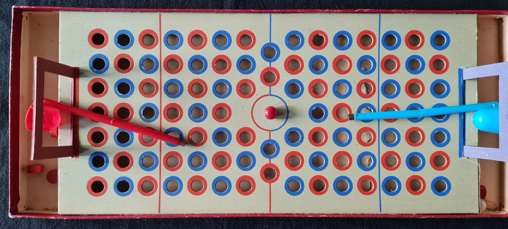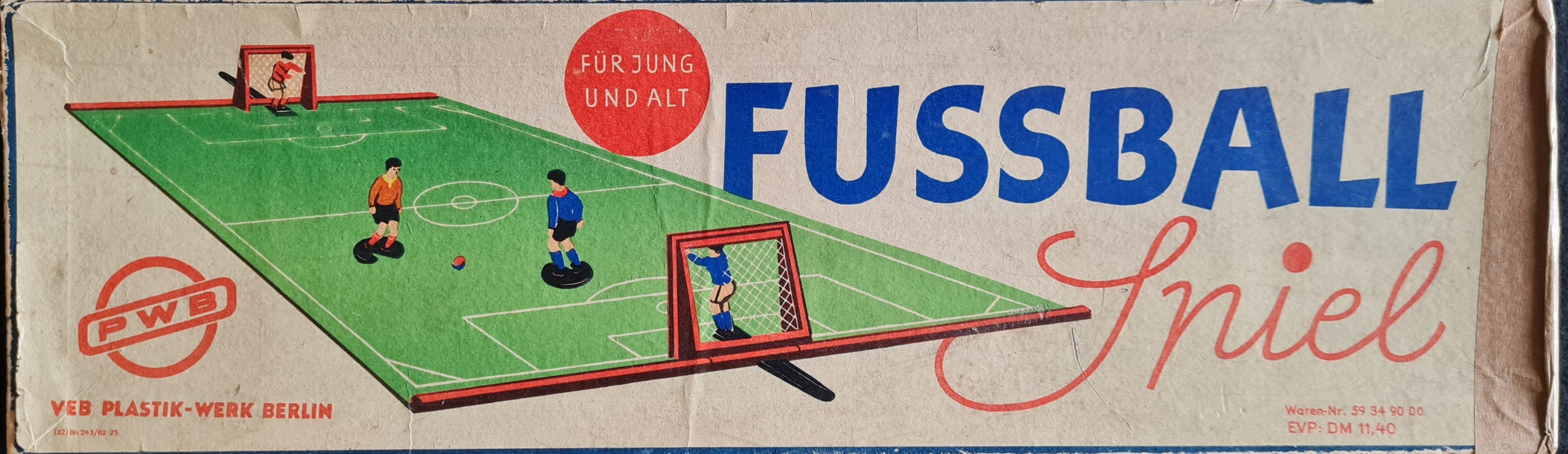 Das Exemplar in der Spielesammlung enthält die knieenden Torwartfiguren und ist damit vor 1954 entstanden. Es ist gut erhalten und vollständig; lediglich die Bälle sind ersetzt.