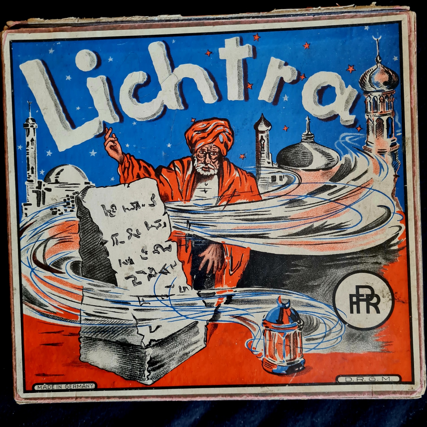 „Lichtra“ wurde 1910 auf der Leipziger Messe herausgebracht. Alle möglichen Wissensgebiete und auch Fremdsprachen konnten mit diesem Spiel erlernt werden.