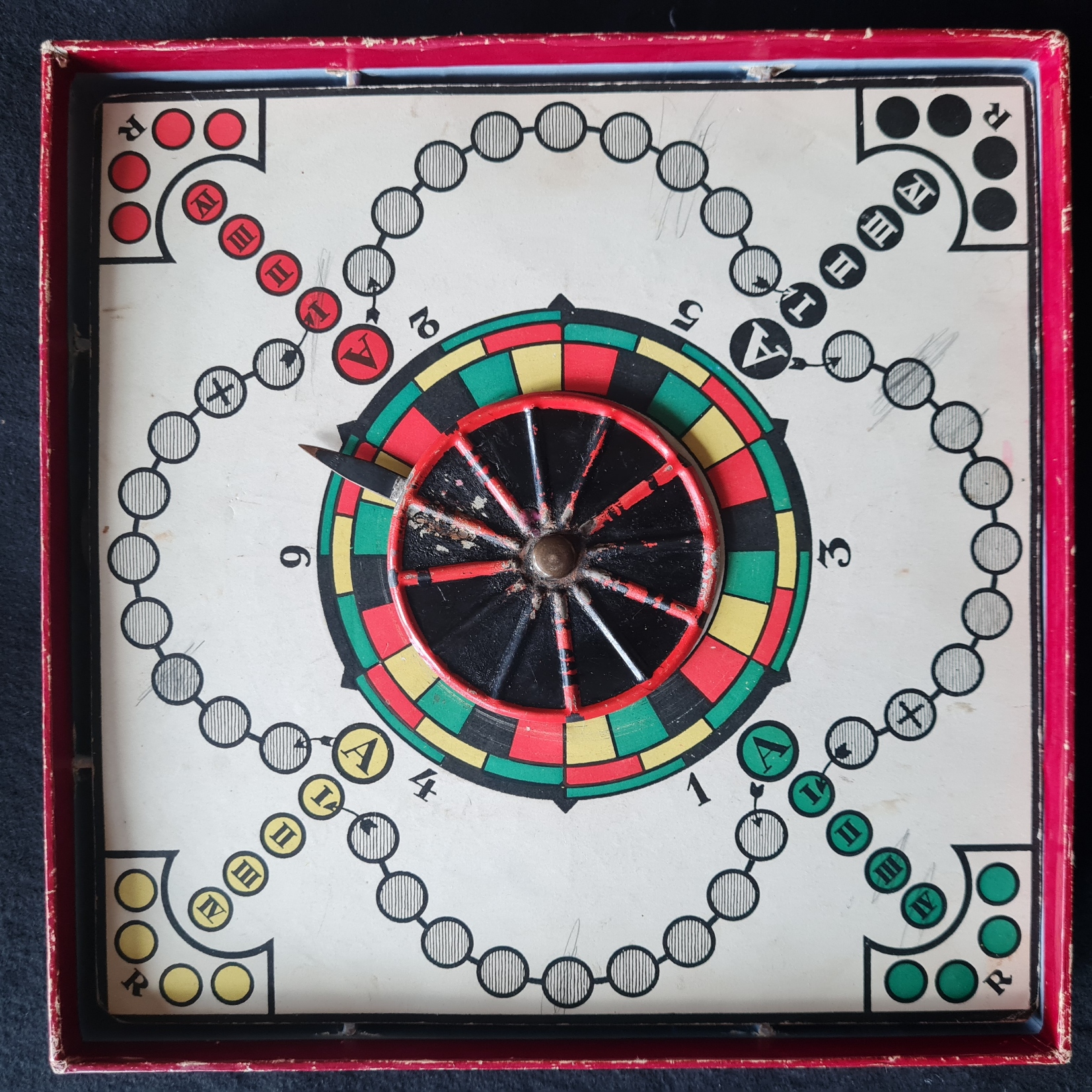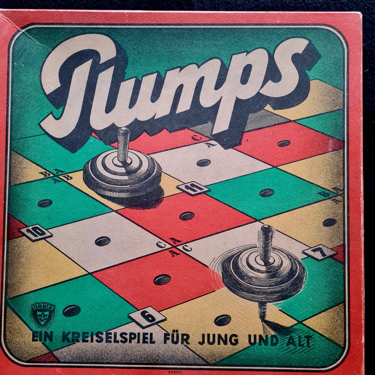 Plumps - ein gut erhaltenes Geschicklichkeitsspiel mit einem Kreisel.