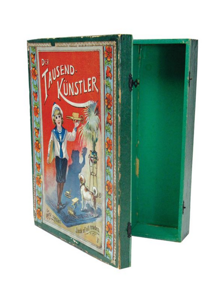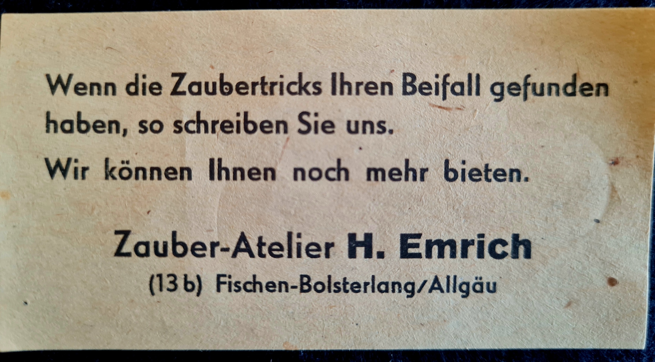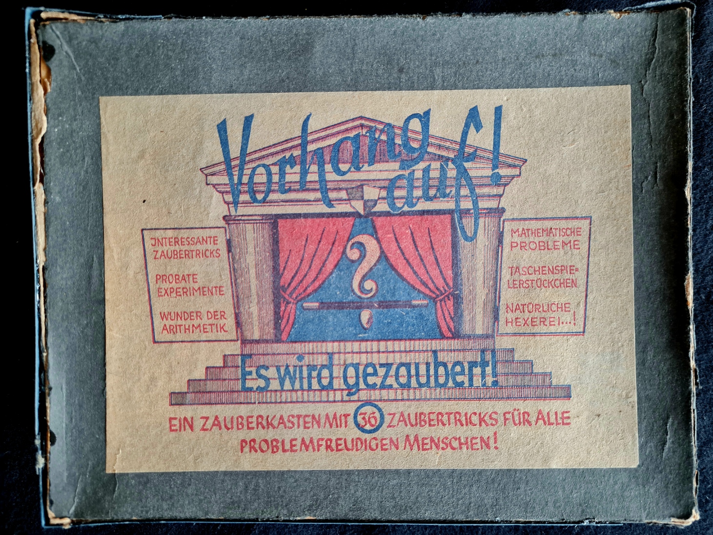 Der beiliegende Zettel weist auf das Zauberatelier H. Emrich als Hersteller hin, der wahrscheinlich auch weitere Zauberutensilien produziert hat. Als Erscheinungsjahr für Vorhang auf wird 1948 bzw. 1955 angegeben.
