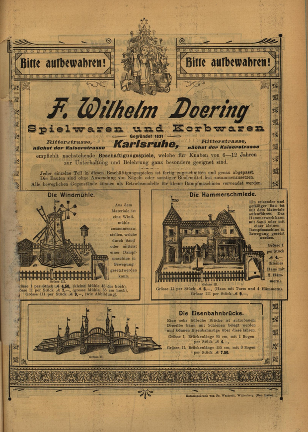 Erste Beilagen sind zu Gesellschaftsspielen (wohl mehrheitlich von Ravensburger), ab 1898 gibt es eine weitere Beilage mit Beschäftigungsspielen von Julius Stief.