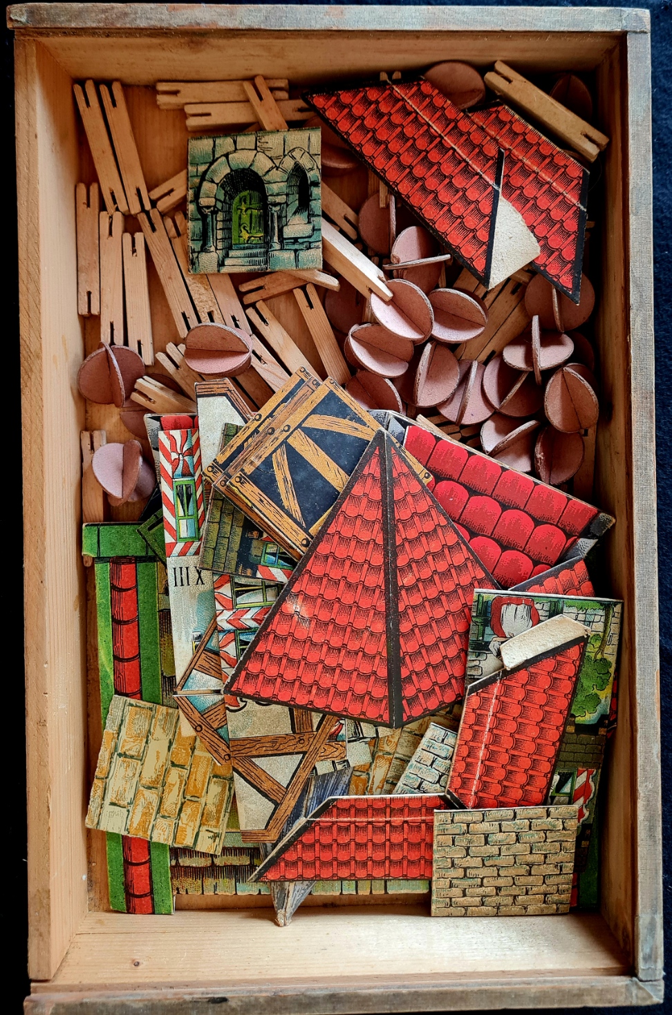 Beim Spielesammlungexemplar sind beide Vorlagenhefte vollständig vorhanden; einige wenige Steine sind gebrochen oder fehlen.